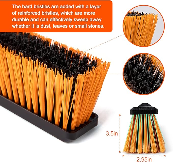 - Stiff Bristle Broom:This commercial grade outdoor broom feature special split-end bristle technology,so that capture fine dust effectively.Crafted with durability in mind, our outdoor broom features a sturdy hard bristle head and a solid thicker handle. This combination ensures that the broom can withstand heavy-duty use and will last for years to come.