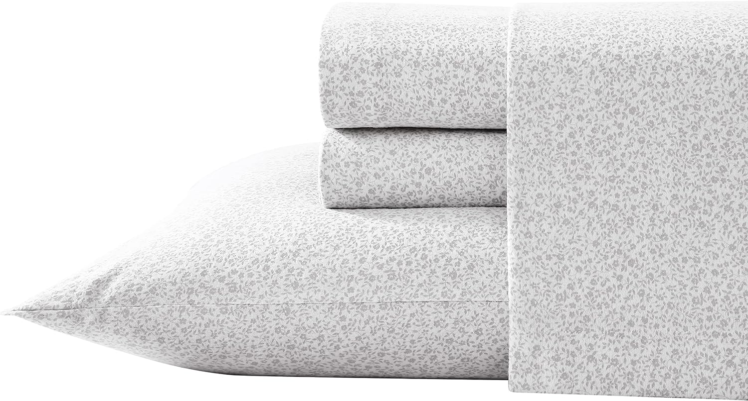 Flannel Cozy Sheet Sets-Chelsie Vine Grey/White