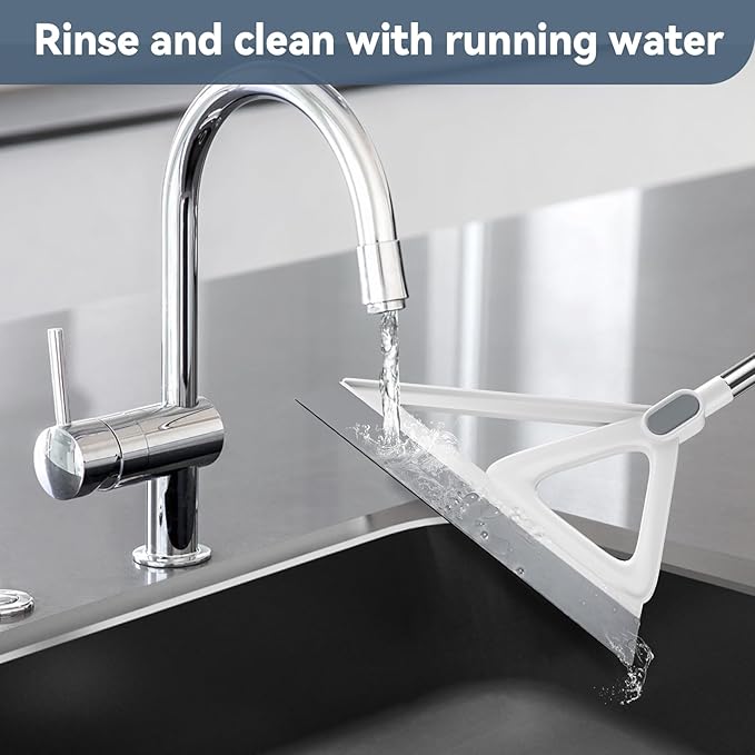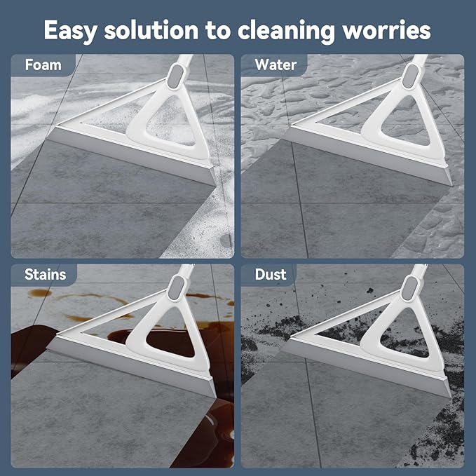- VERSATILE, EFFICIENT, EASY-TO-USE: The Magic Broom is a handy tool for cleaning up all sorts of messes, including broken glass, spilled liquids, fine dust, coffee grounds, sugar, and pet and human hair. This Magic Broom for floor can even easily sweep away sticky substances like ketchup and cracked eggs. This magic broom not only allows you to clean those hard-to-reach areas while protecting your wrists from pain, but also easily cleans up bathroom water puddles and kitchen grease.